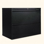 Alera Two-Drawer Lateral File Cabinet, 36w x 19-1/4d x 29h, Black Feature