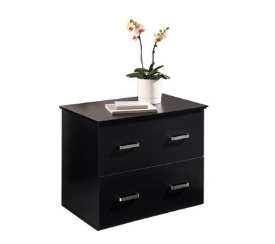 - A rich black finish and silver handles highlight the distinct look of this 2-drawer lateral file cabinet
